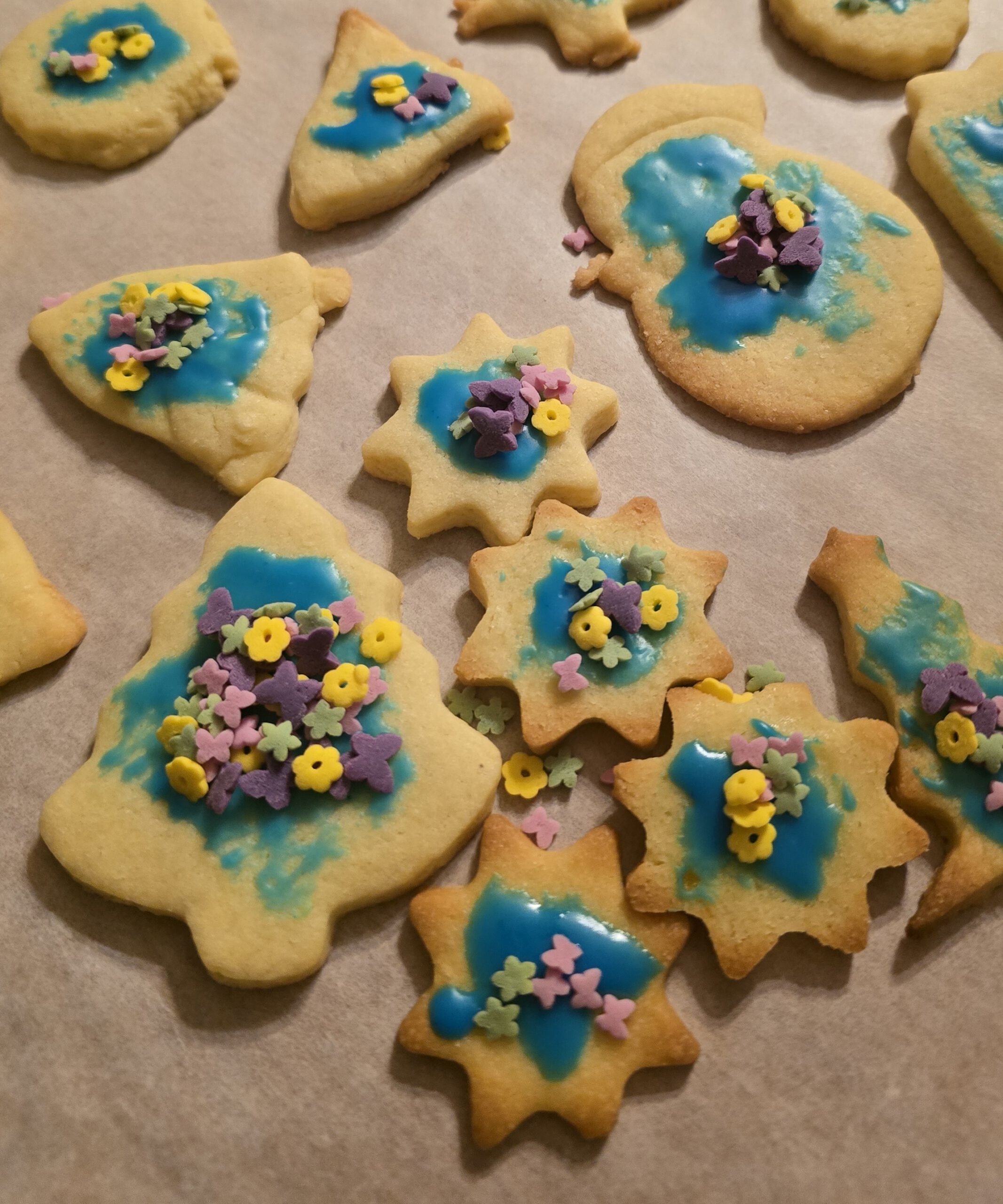 Besonders bei der Herstellung von Spritzgebäck mit einem traditionellen Fleischwolf wurden zahlreiche Kindheitserinnerungen wach. Darüber hinaus wurde fleißig Plätzchenteig ausgestochen und mit verschiedensten Dekorationen sowie Zuckerguss liebevoll verziert.